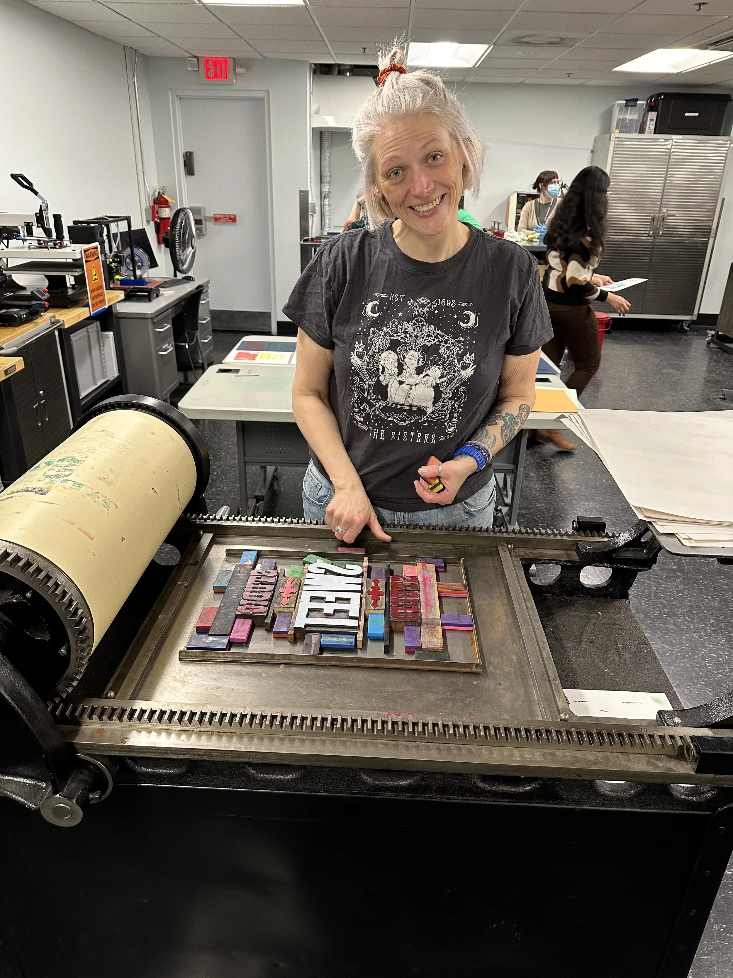 Midnite Birdie is the creative playground of interdisciplinary Artist Jax Young. Midnite Birdie is a love of all things analog and a healthy dose of digital. Jax is a graduate of Michigan State University (BA- Interdisciplinary Humanities: Emphasis in Studio Art, Theatre, and Zoology, 2002), Eastern Michigan University (BFA- Graphic Design, 2009), and Schoolcraft College (Teaching Certification, 2019). As well as being an artist, Jax is a full time educator at William D. Ford Career-Technical Center where she teaches Digital Art & Design. She specializes in Printmaking, Letterpress, Collage, and Metal smithing, but is alway down for learning a new art form.